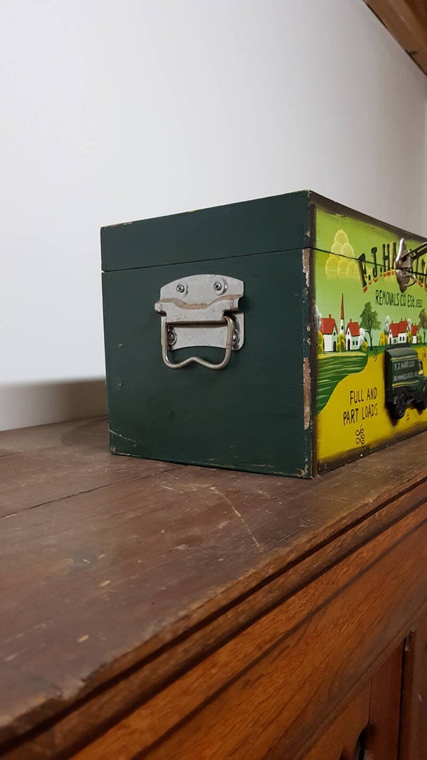 Decoratief voorraadkistje Harrison uit vorige eeuw van hout.